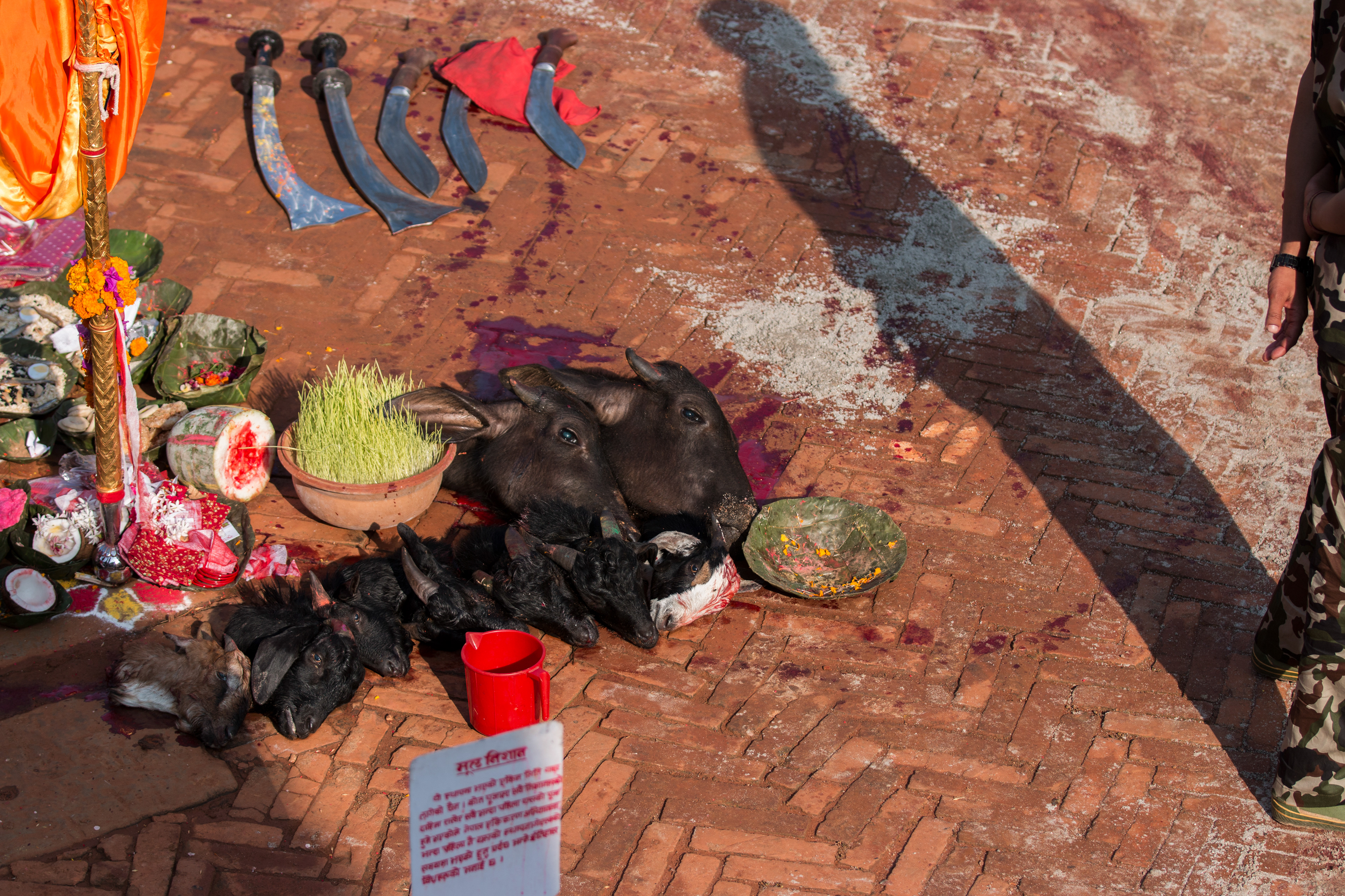 In Nepal the images were captured during the week long Dashain Festival. Some images depict sacrificial ceremonies. Please be aware.